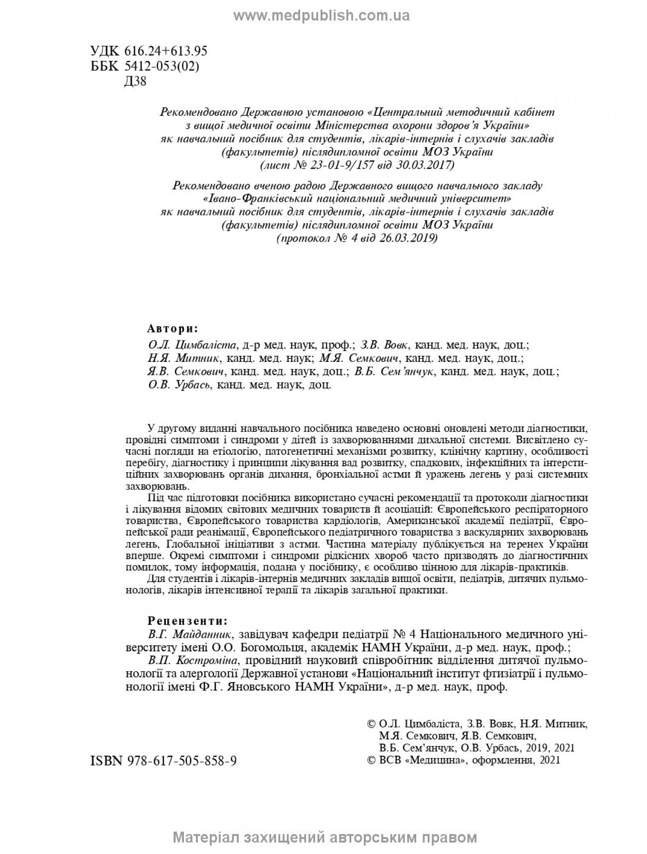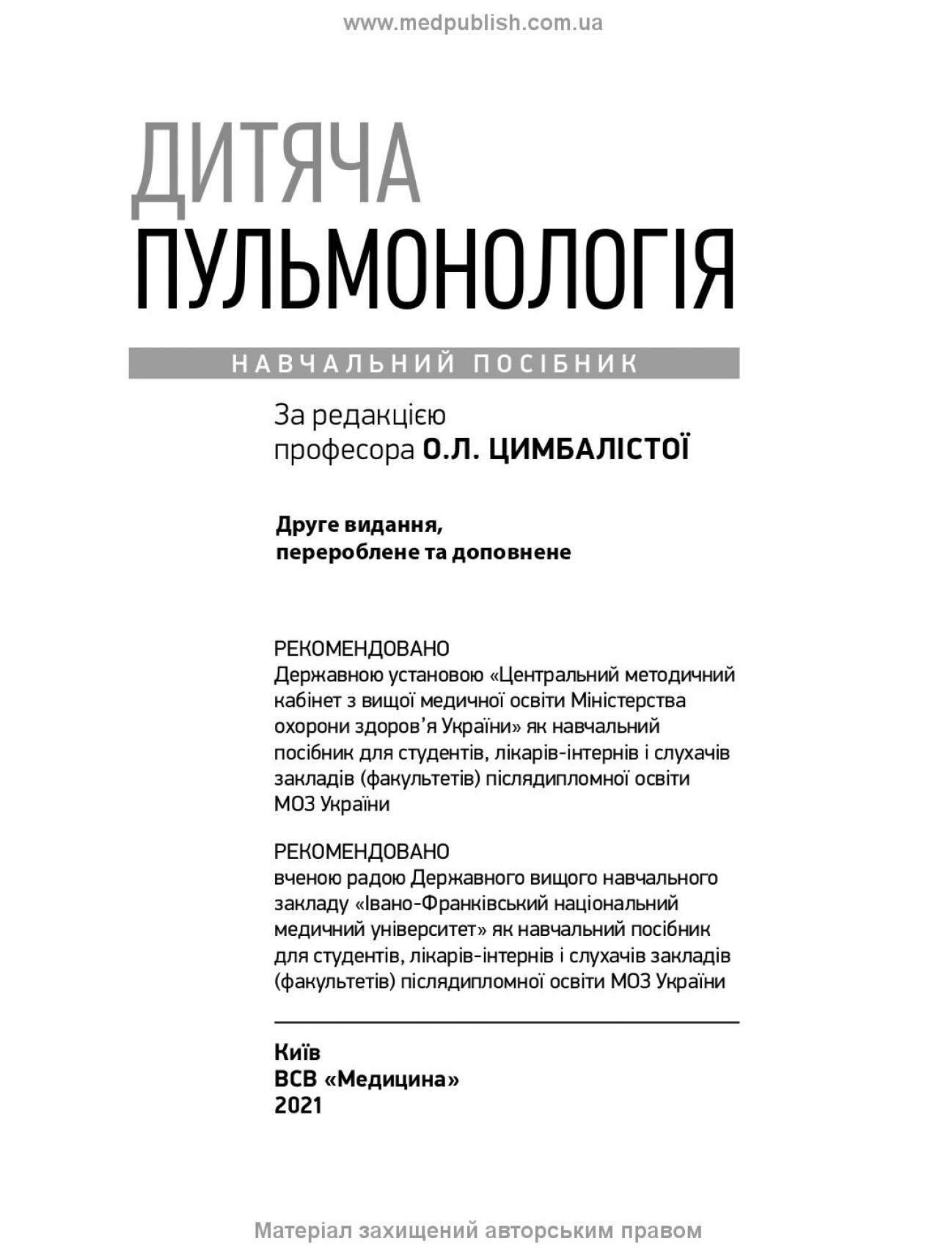 Дитяча пульмонологія (навчальний посібник) — О.Л.Цимбаліста, З.В. Вовк, Н.Я. Митник та ін., 2021