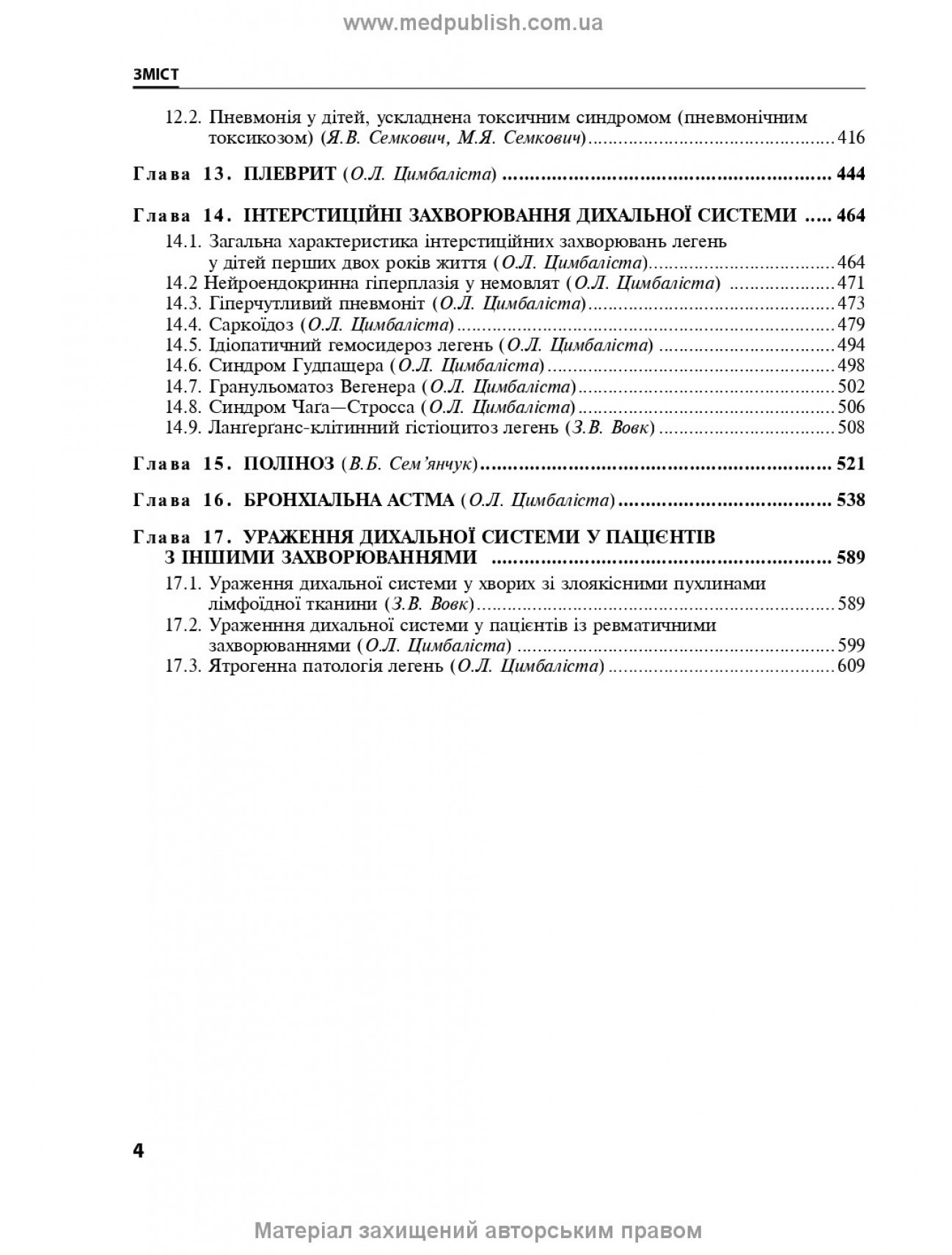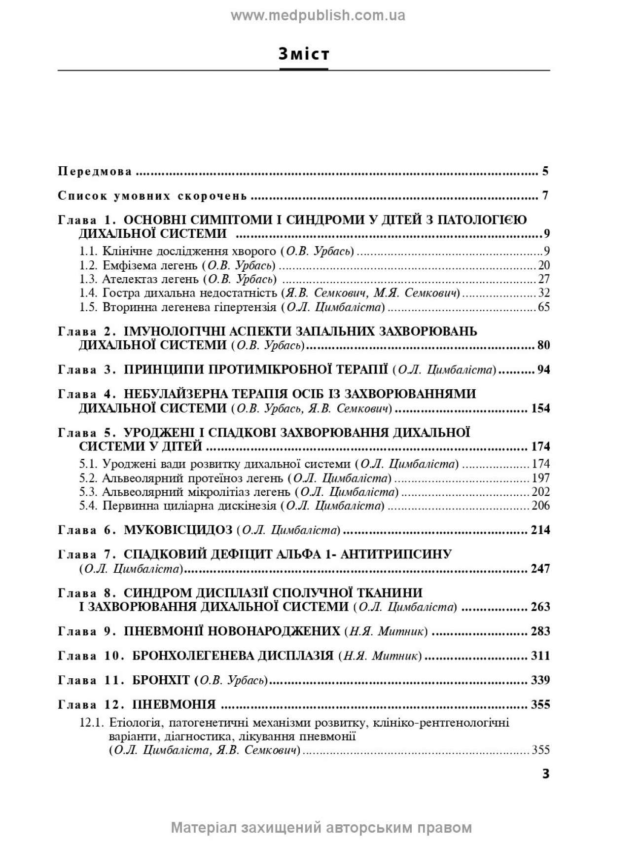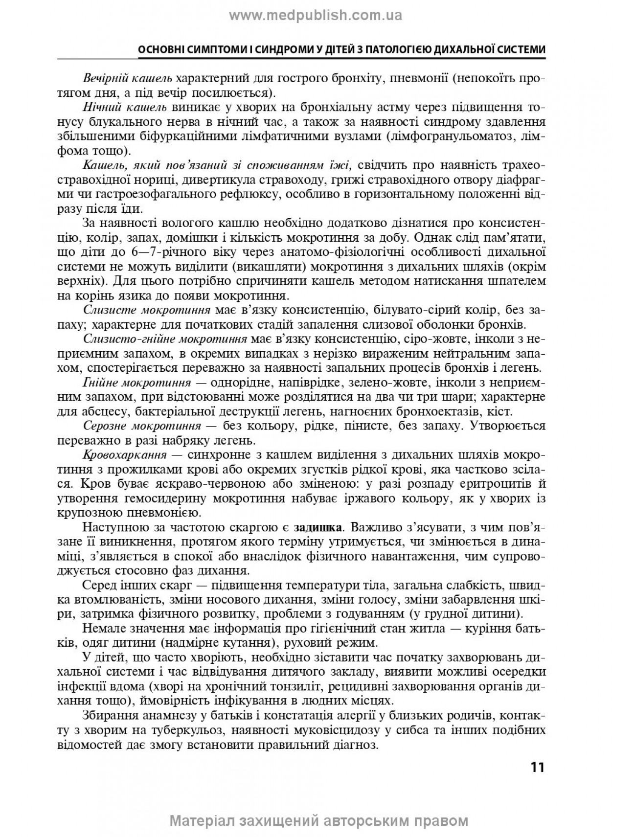 У другому виданні навчального посібника наведено основні оновлені методи діагностики, провідні симптоми і синдроми у дітей із захворюваннями дихальної системи. Висвітлено сучасні погляди на етіологію, патогенетичні механізми розвитку, клінічну картину, особливості перебігу, діагностику і принципи лікування вад розвитку, спадкових, інфекційних та інтерстиційних захворювань органів дихання, бронхіальної астми й уражень легень у разі системних захворювань.