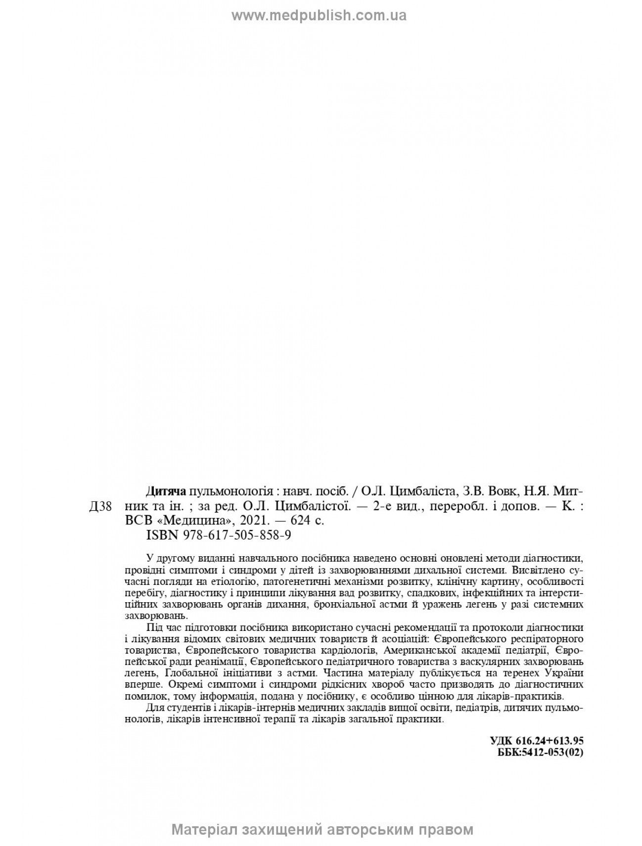 Анотація, характеристики, відгуки на книгу: Дитяча пульмонологія (навчальний посібник) — О.Л.Цимбаліста, З.В. Вовк, Н.Я. Митник та ін., 2021