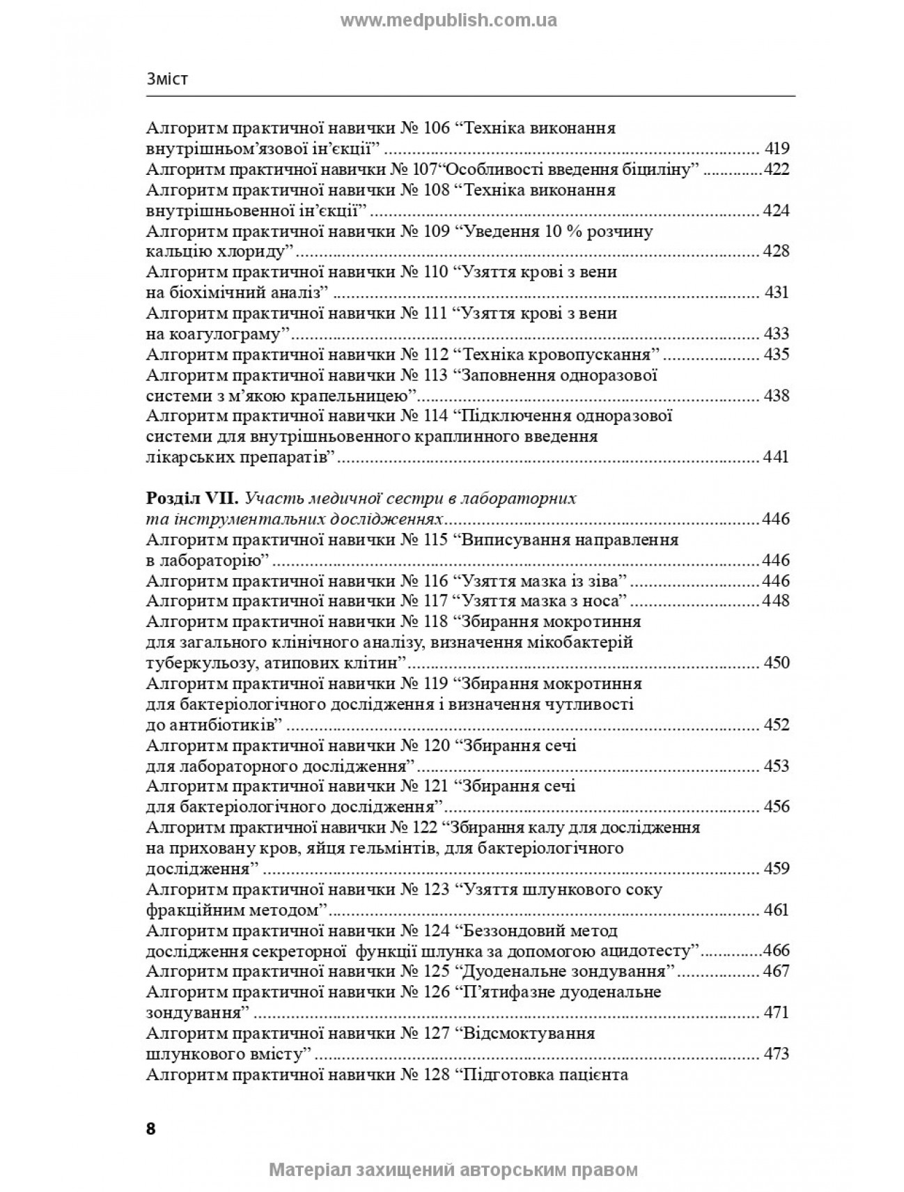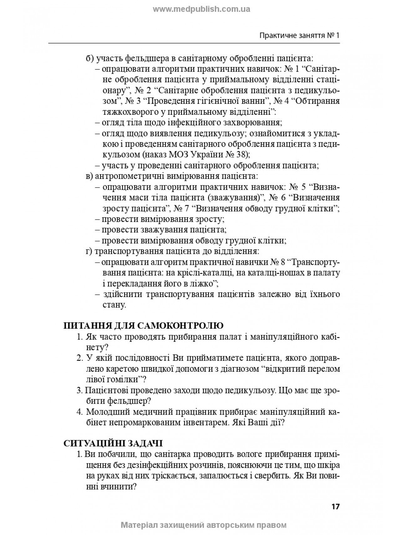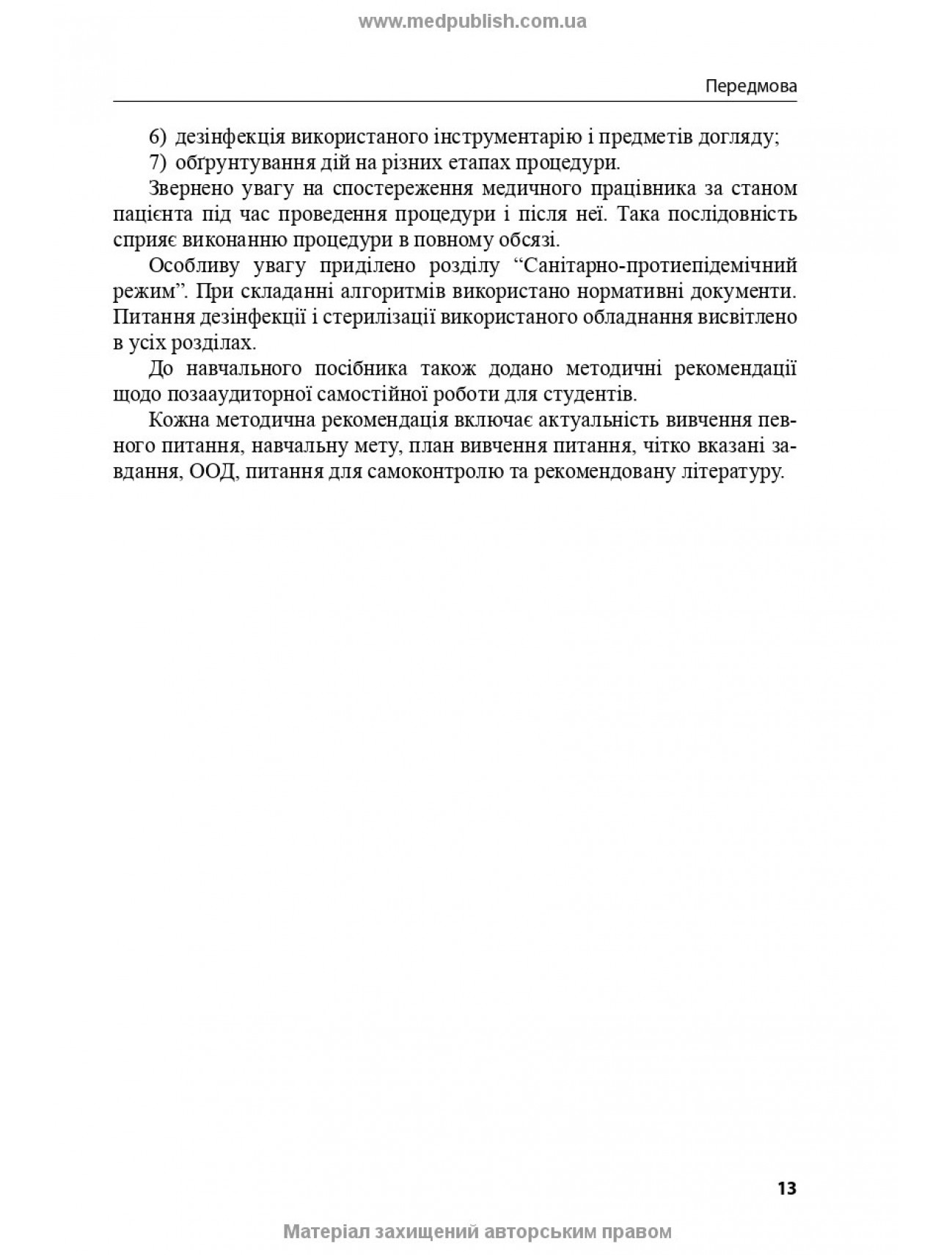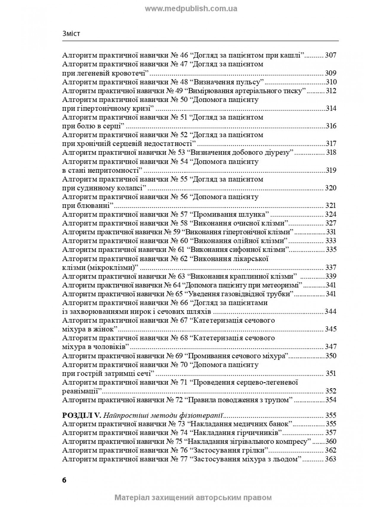 У навчальному посібнику наведено рекомендації щодо проведення занять з догляду за хворими і медичної маніпуляційної техніки, алгоритми практичних навичок відповідно до розділів і тем дисципліни.