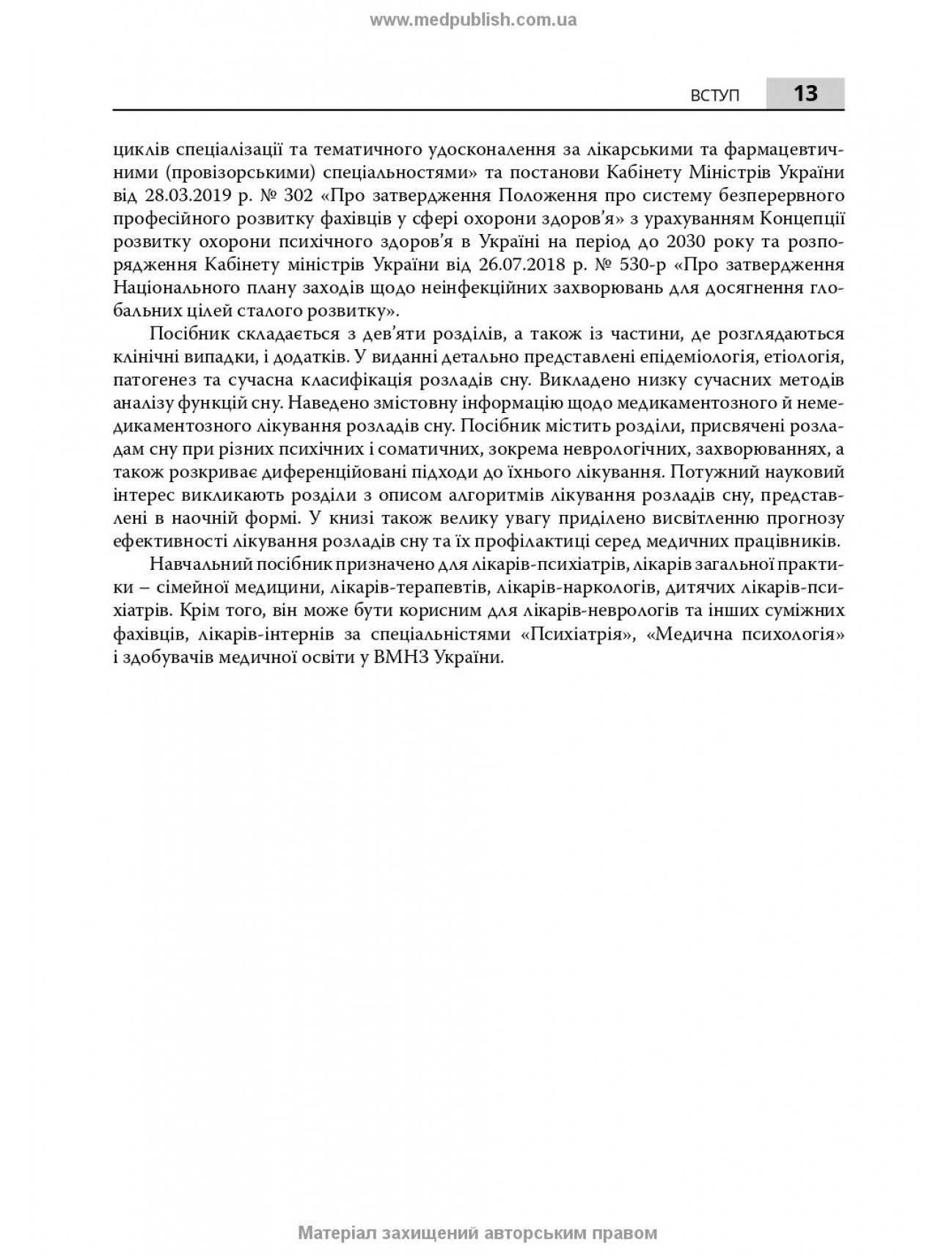 Рекомендовано для підготовки лікарів-психіатрів, дитячих лікарів-психіатрів, лікарів-наркологів, лікарів-терапевтів та лікарів загальної практики — сімейної медицини до аудиторних занять та самостійної роботи впродовж циклу тематичного вдосконалення «Норма та розлади сну. Терапевтична корекція патології сну». Посібник буде корисним лікарям‑неврологам, іншим суміжним фахівцям і лікарям-інтернам за спеціальностями «Психіатрія», «Медична психологія», в тому числі здобувачам медичної освіти у ЗВМО України.
