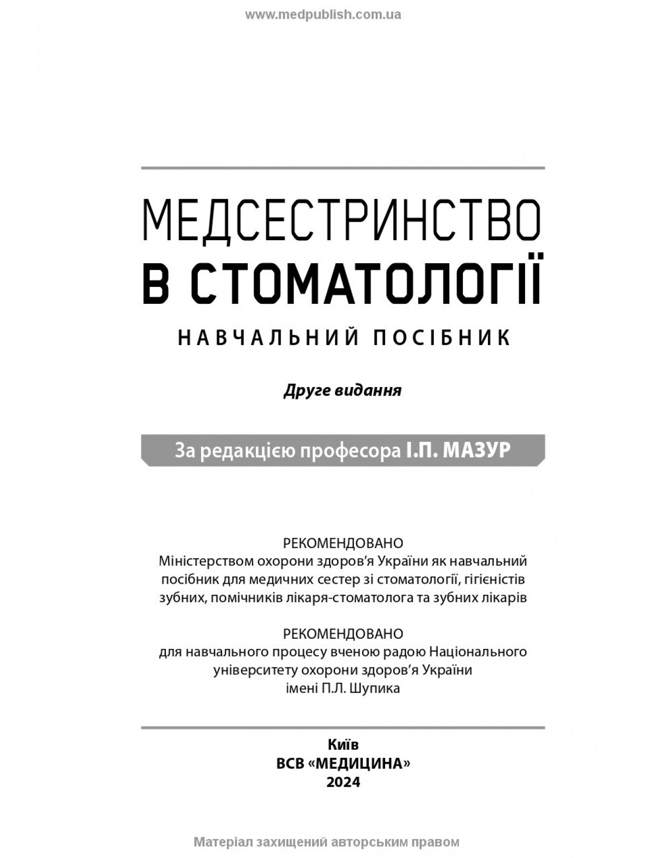 Медсестринство в стоматології / І.П. Мазур, Л.О. Щербак, С.В. Хлєбас та ін. — 2-е видання