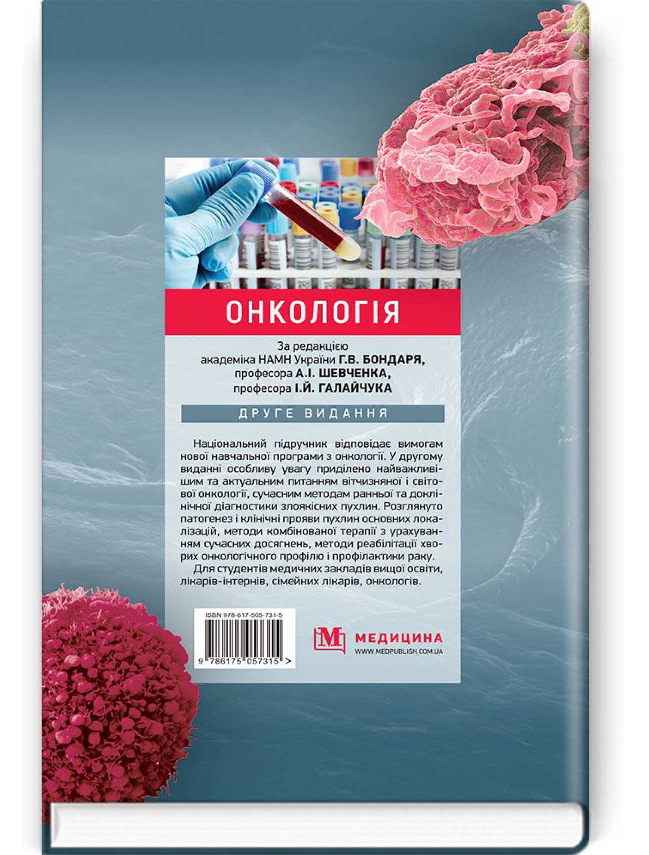Національний підручник відповідає вимогам нової навчальної програми з онкології. У другому виданні особливу увагу приділено найважливішим та актуальним питанням вітчизняної і світової онкології, сучасним методам ранньої та доклінічної діагностики злоякісних пухлин. Розглянуто патогенез і клінічні прояви пухлин основних локалізацій, методи комбінованої терапії з урахуванням сучасних досягнень, методи реабілітації хворих онкологічного профілю і профілактики раку.