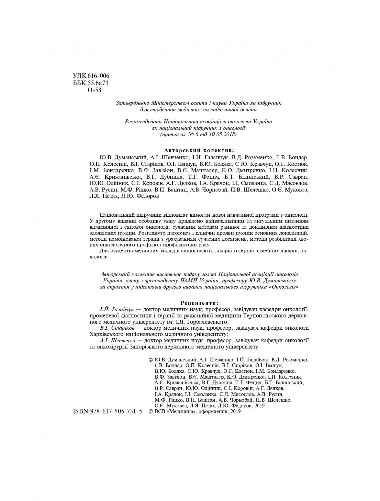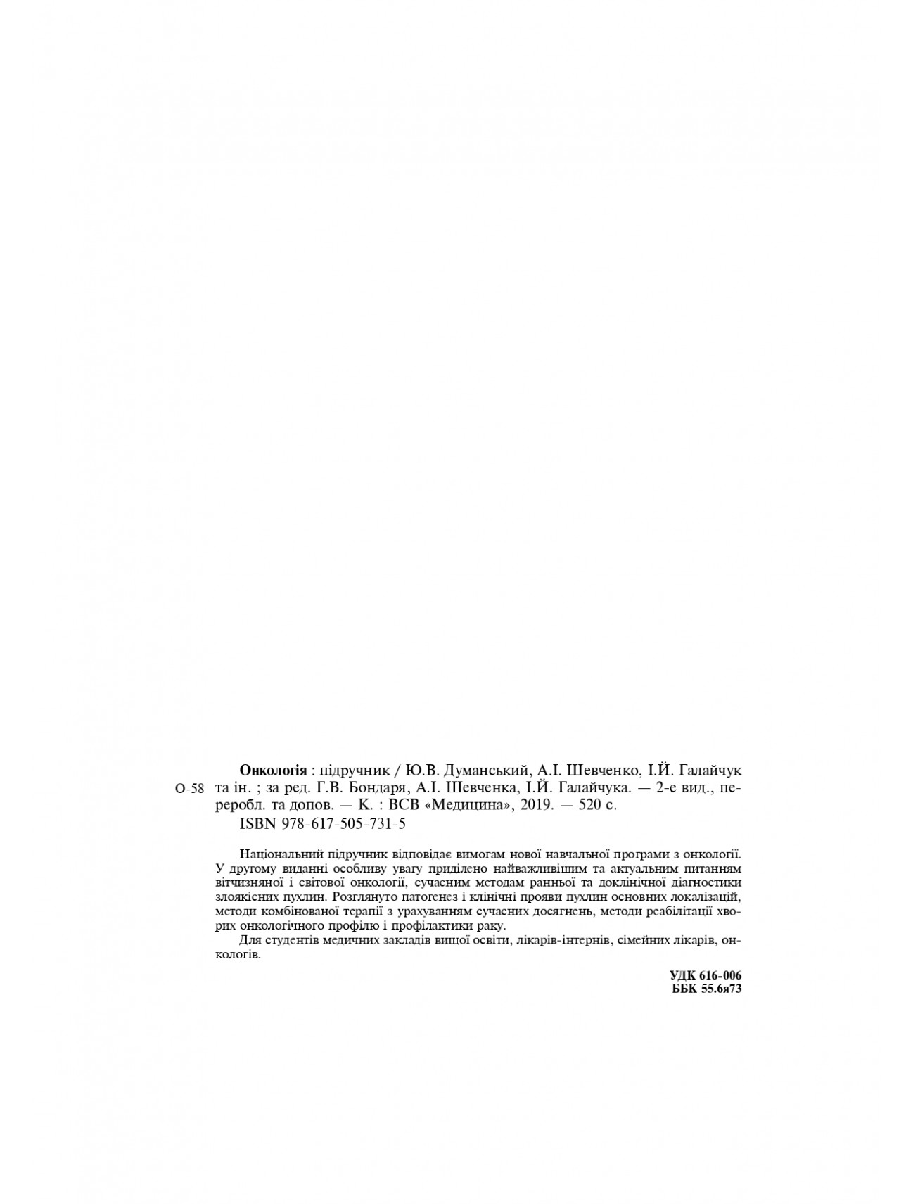 Анотація, характеристики, відгуки на книгу: Онкологія (підручник) — Г.В. Бондар, А.I. Шевченко, I.Й. Галайчук, Ю.В. Думанський та ін., 2019
