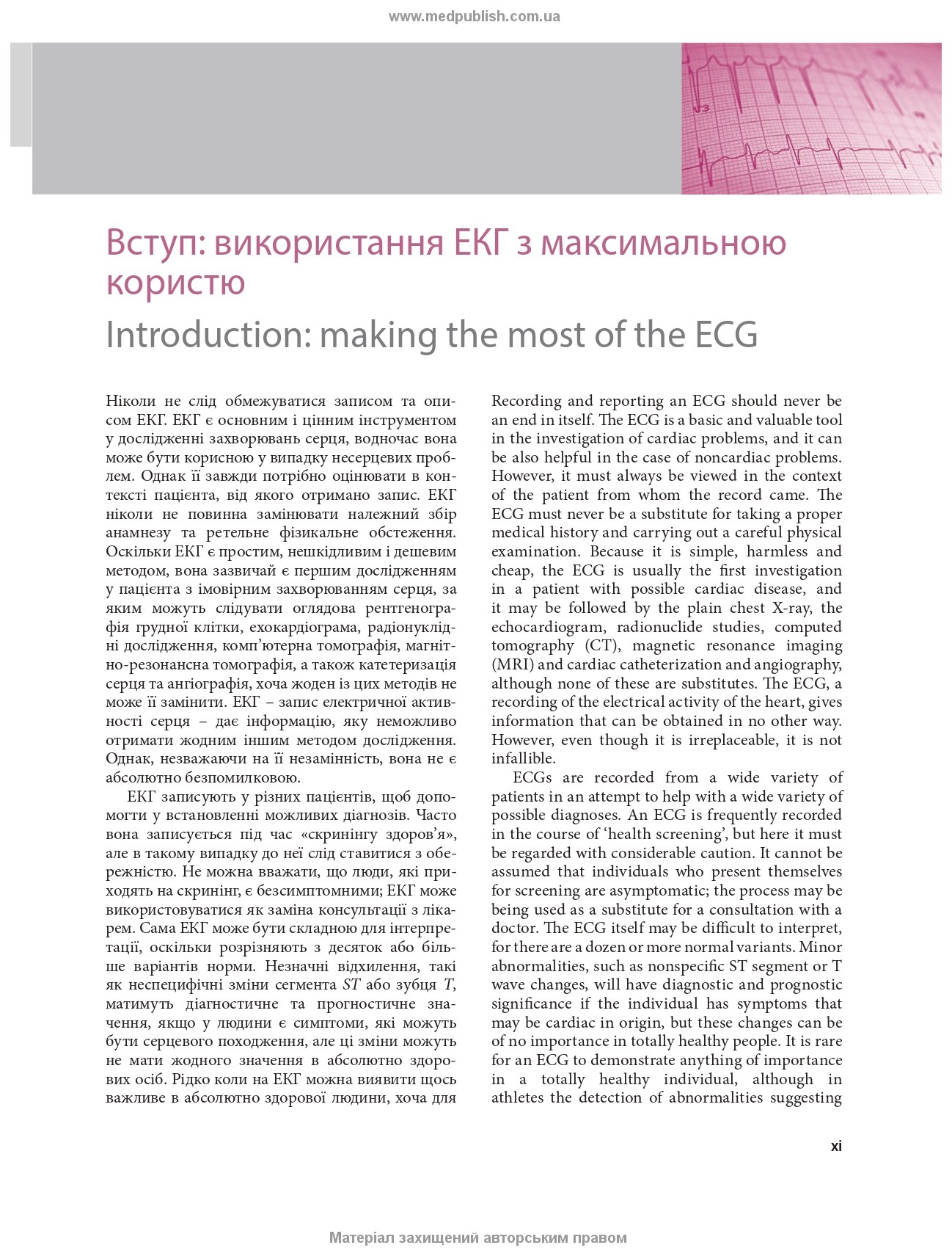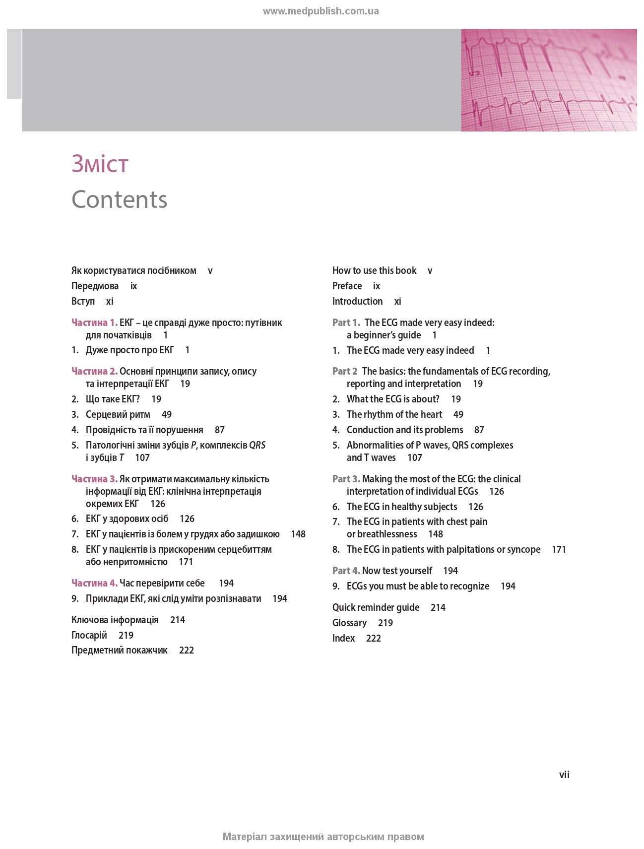 | Ліцензія | переклад і передрук The ECG Made Easy, 10th edition (2025) публікуються відповідно до угоди з Elsevier Limited |