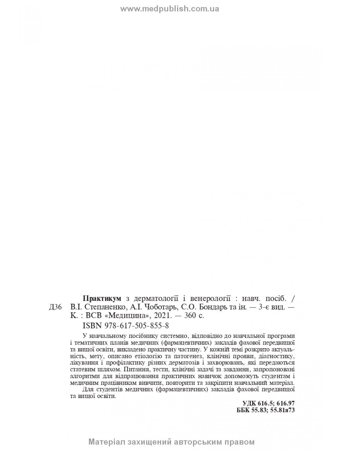 Анотація, характеристики, відгуки на книгу: Практикум з дерматології і венерології (навчальний посібник) — В.І. Степаненко, А.І. Чоботарь, С.О. Бондарь та ін., 2021