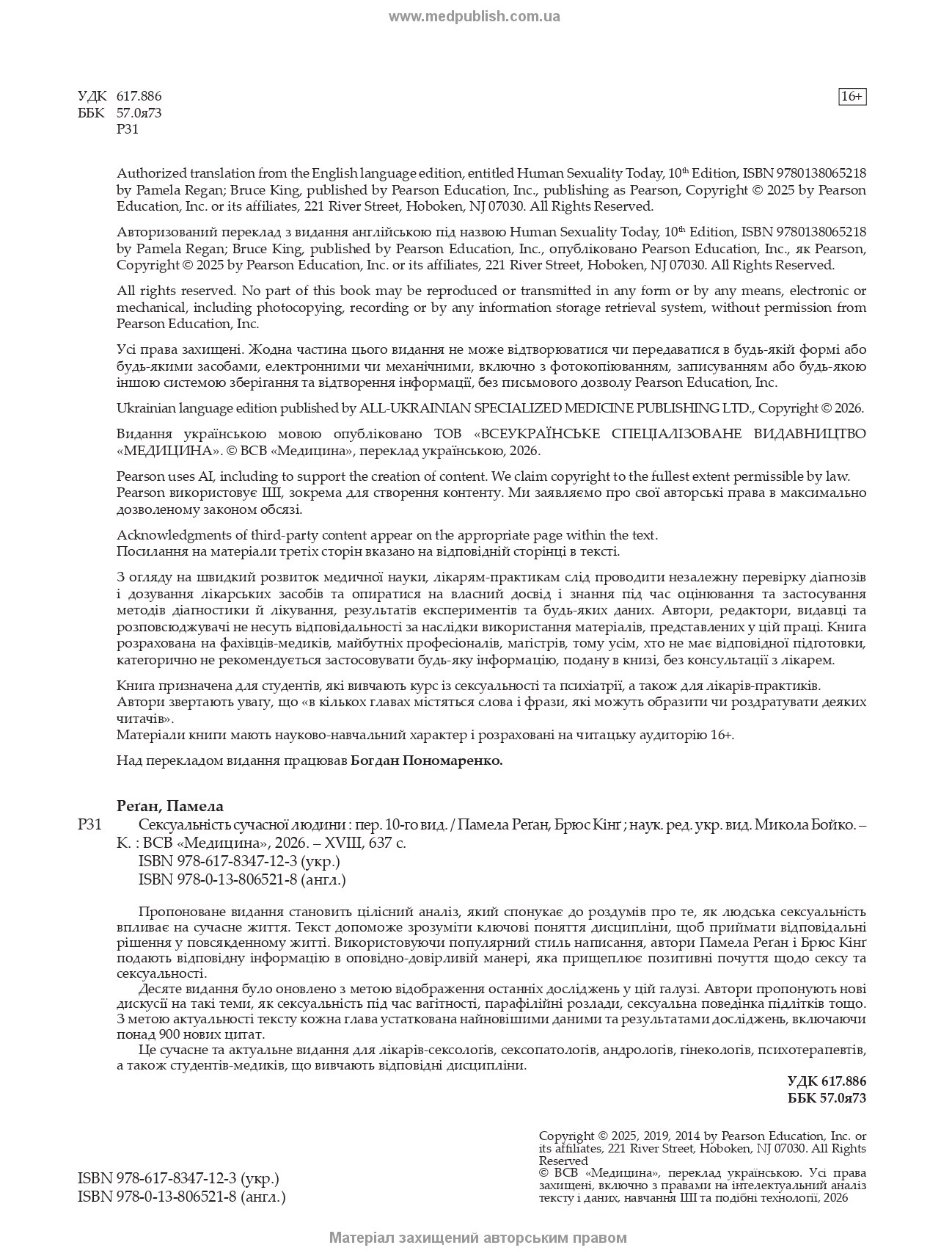 | Ліцензія | переклад Human Sexuality Today, 10th Edition (2025) публікується відповідно до договору з компанією Pearson Education |